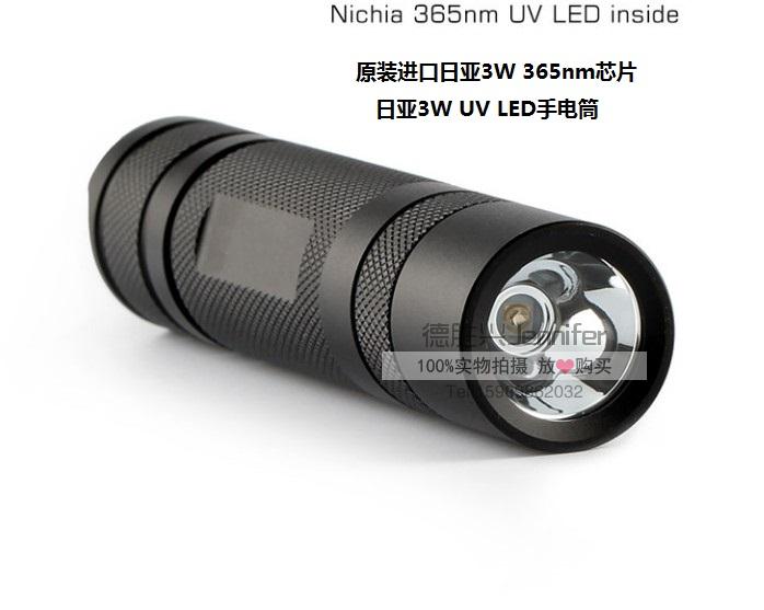 日亚3W紫外线防伪检查手电筒,NICHIA原装365nm芯片紫外线手电。