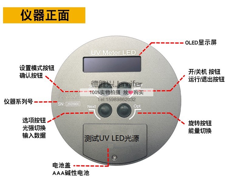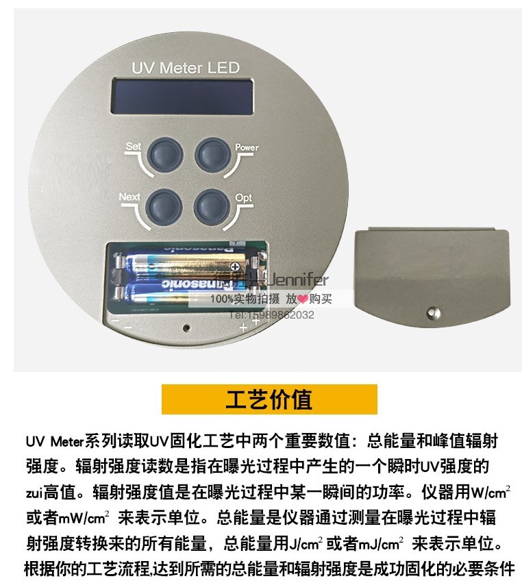 精密设计的光学感应系统只测量UV工艺中相关的波长的数值,并将它转换为数字格式显示在OLED显示屏上。